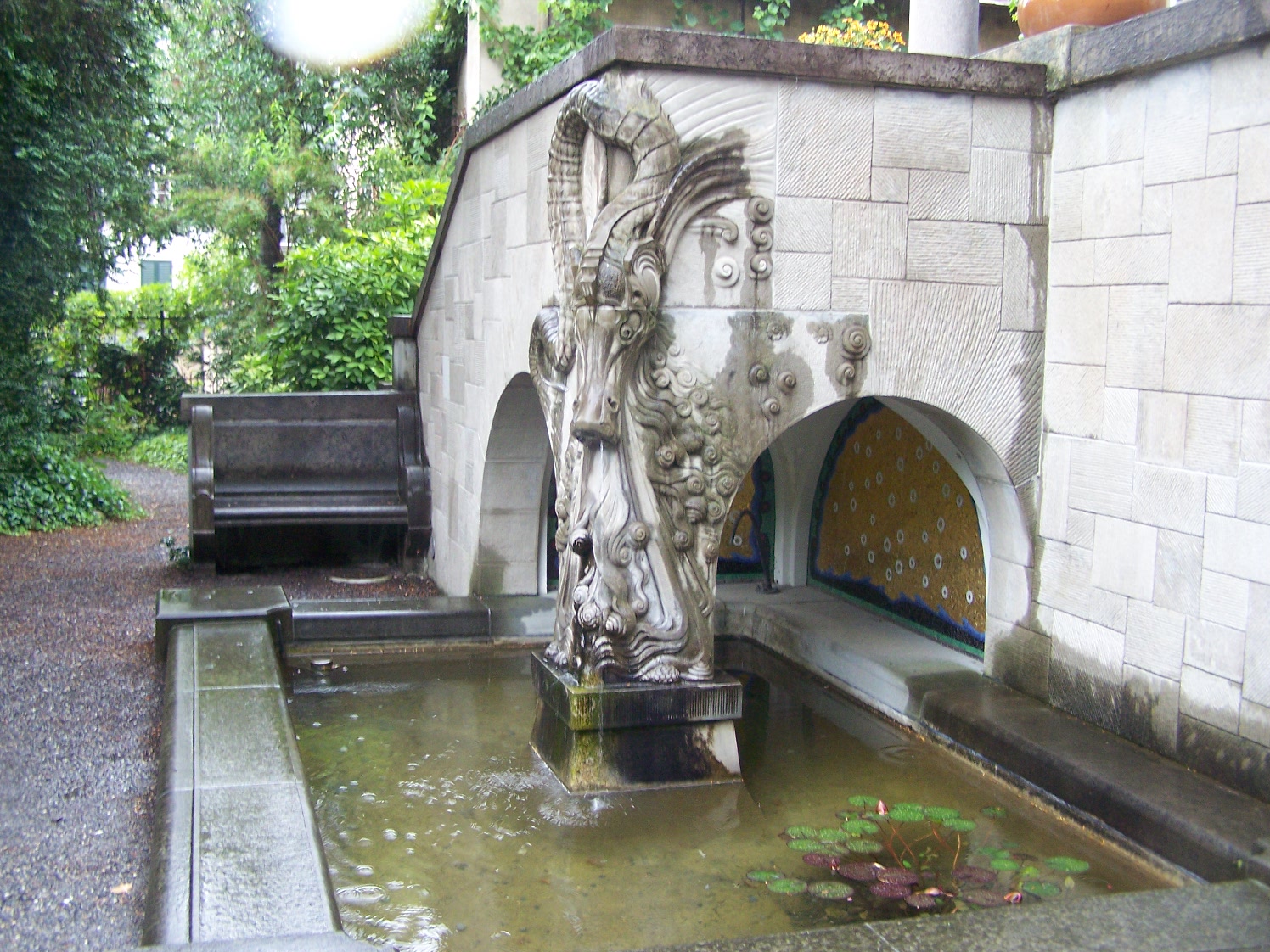 - Ein Drachenbrunnen im Garten der Villa Tobler in Zürich