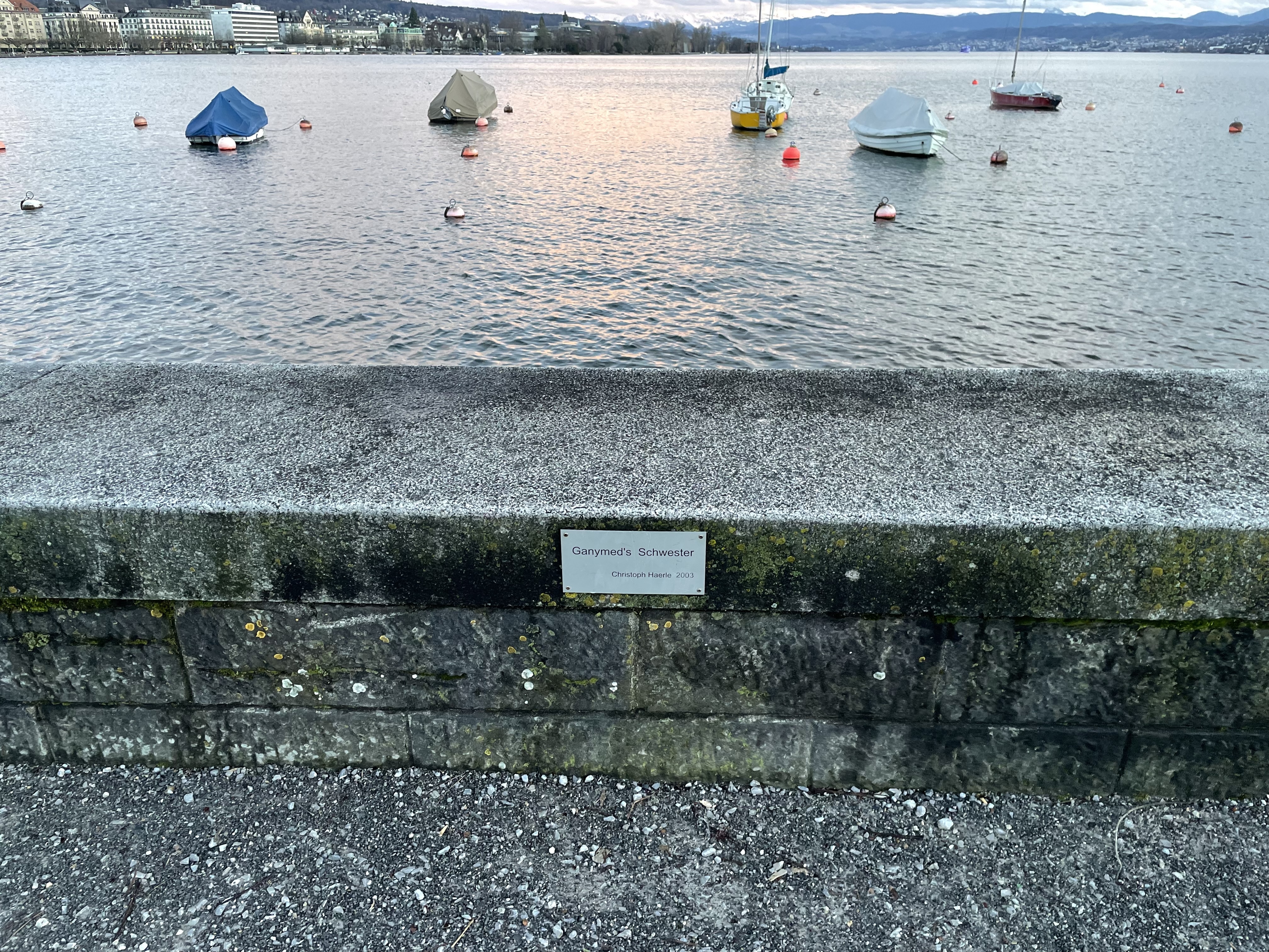 - Die Plaquette mit der Bezeichung der Kunstwerks Ganymed's Schwester