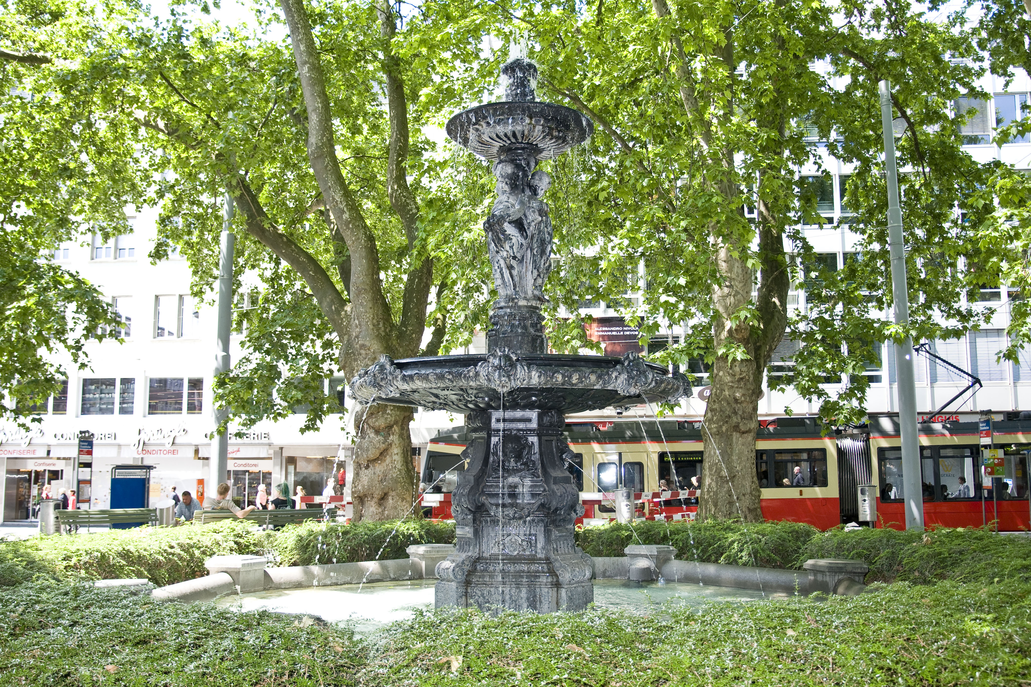 - Dies ist der Springbrunnen am Stadelhofenplatz in Zürich.