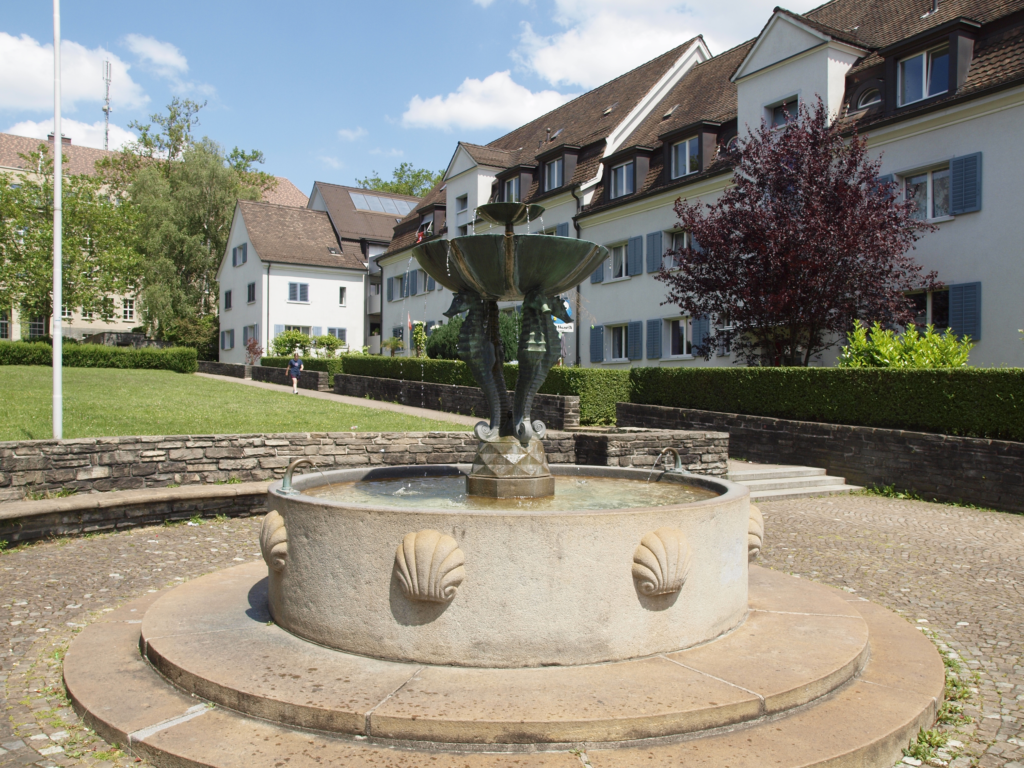 - Im Hofgarten bei der Hofwiesenstrasse 50 in Zürich Unterstrass steht der Seepferdchenbrunnen. Dieser wurde von Eduard Bick 1930 geschaffen.