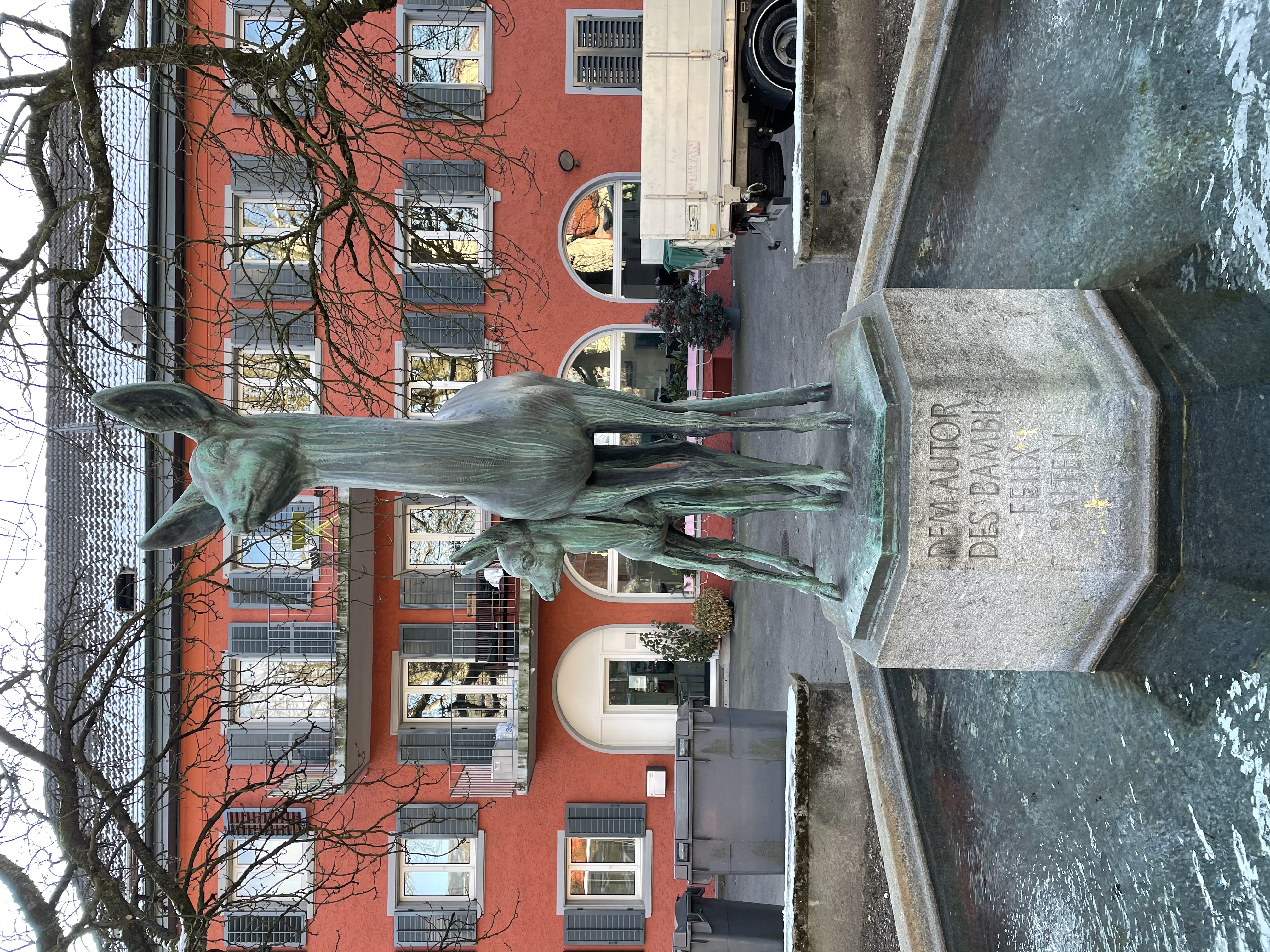 - Fountain in Zurich (at the corner Langmauerstrasse/Winterthurerstrasse), dedicated to the author Felix Salten who wrote the story „Bambi. A Life in the Woods“.