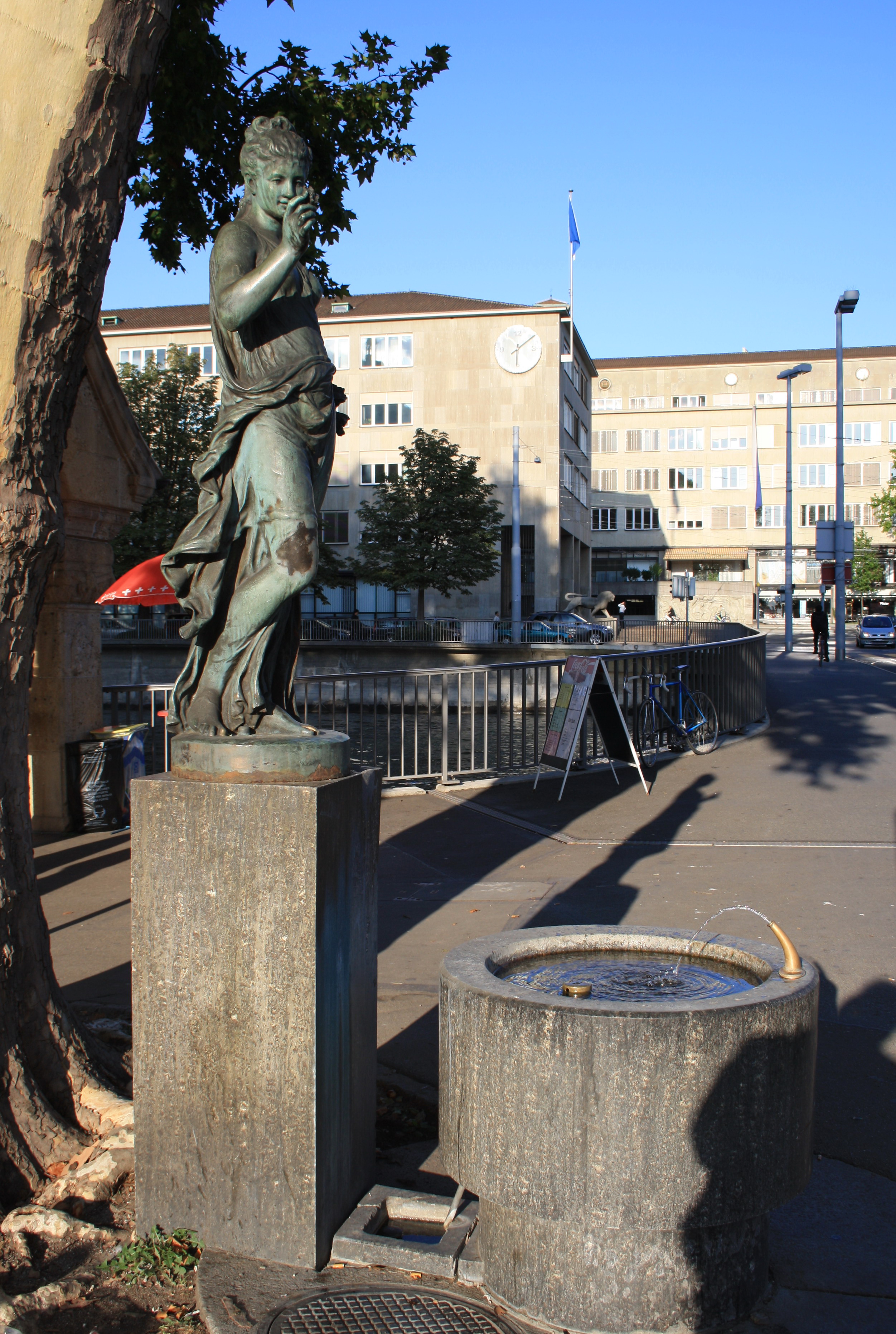 - Platzspitz in Zürich (Switzerland), Walchebrücke and buildings of the cantonal administration in the background