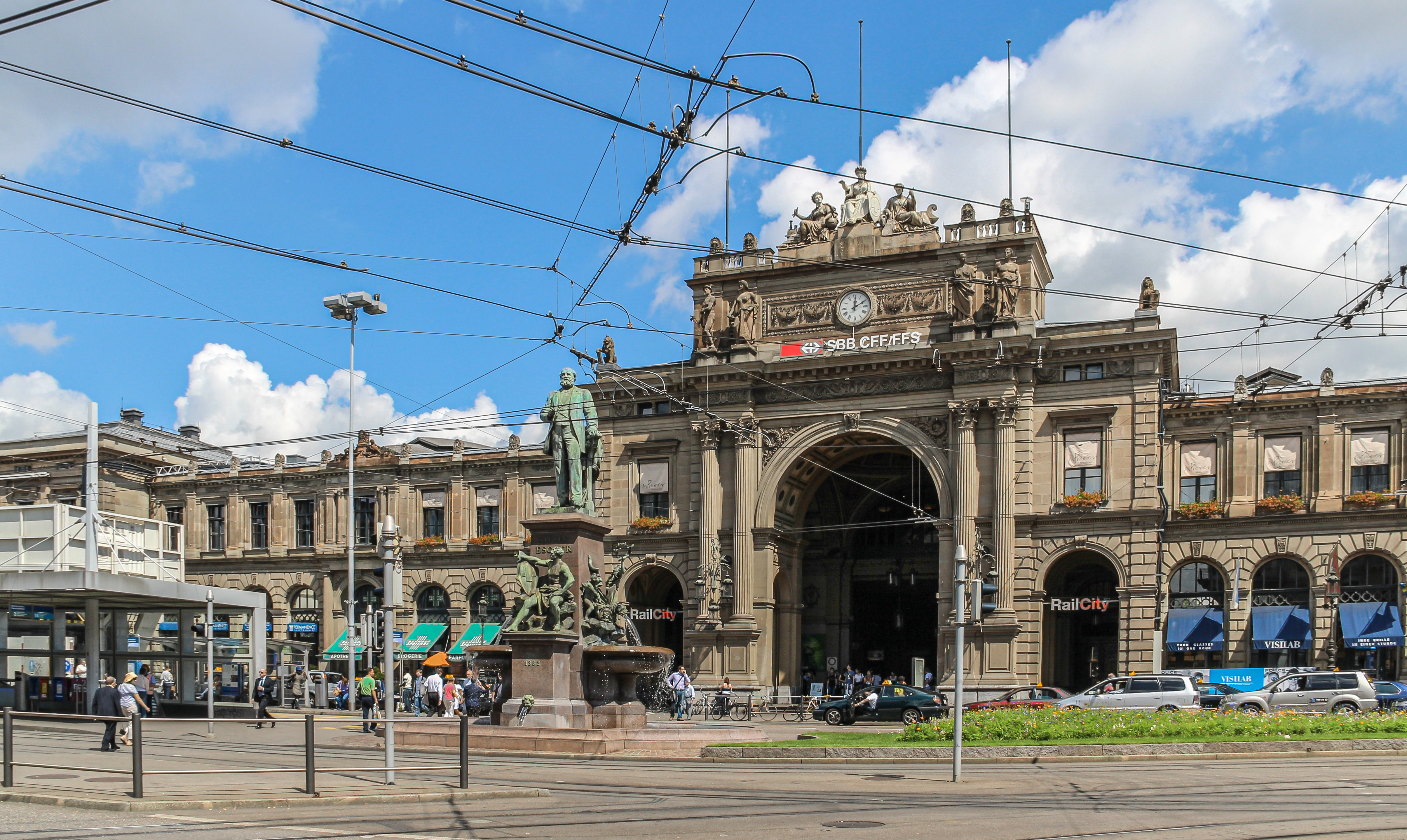 - Railway station (and Alfred Escher memorial fountain) in Zürich, Switzerland