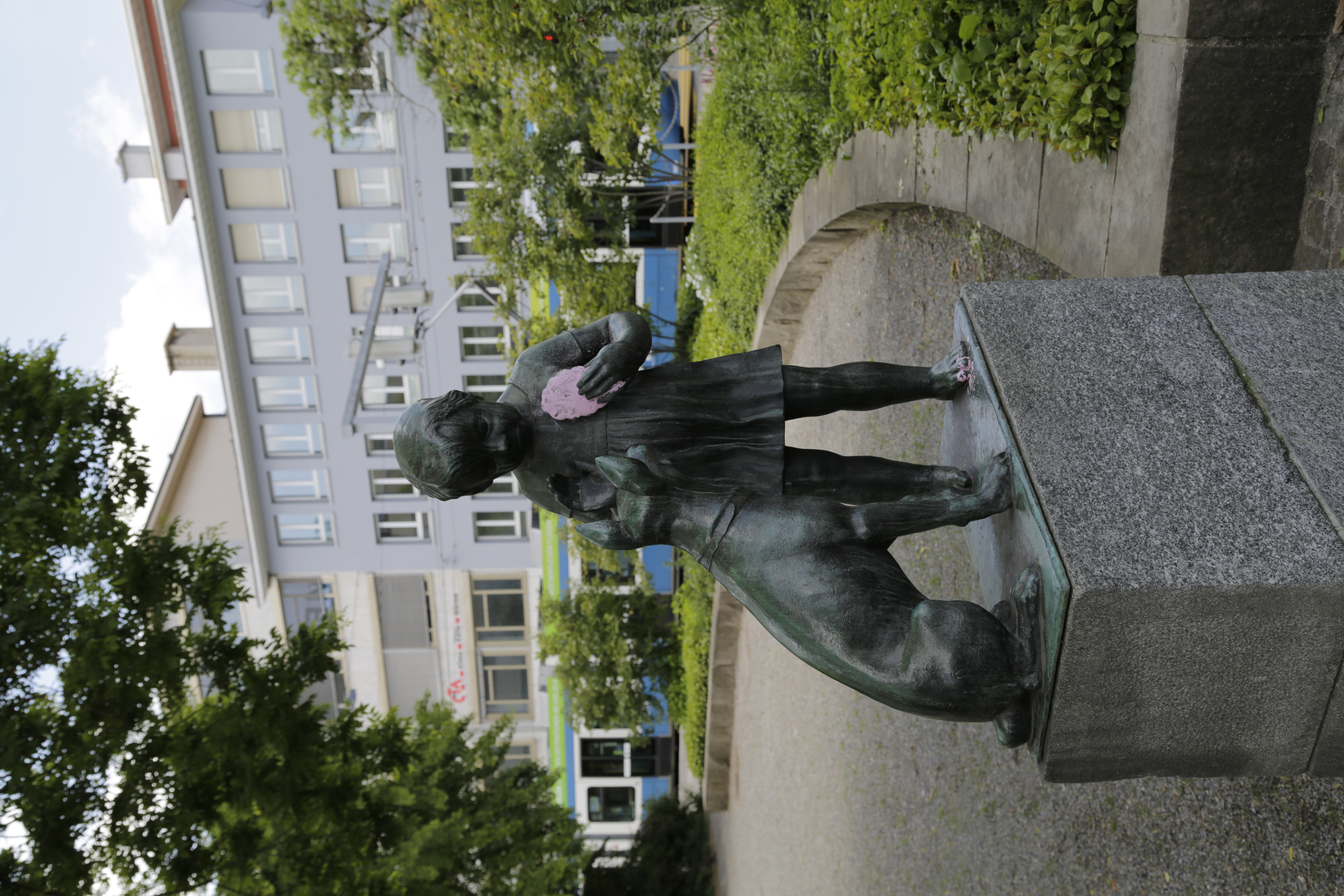 - Kliner Park an der Ecke Albisriedenstrasse/Rauti Strasse. Brunnen mit dahinterstehender Skulptur "Mädchen mit dem Hund" von 1936/37 von Adolf Ernst Hofmann