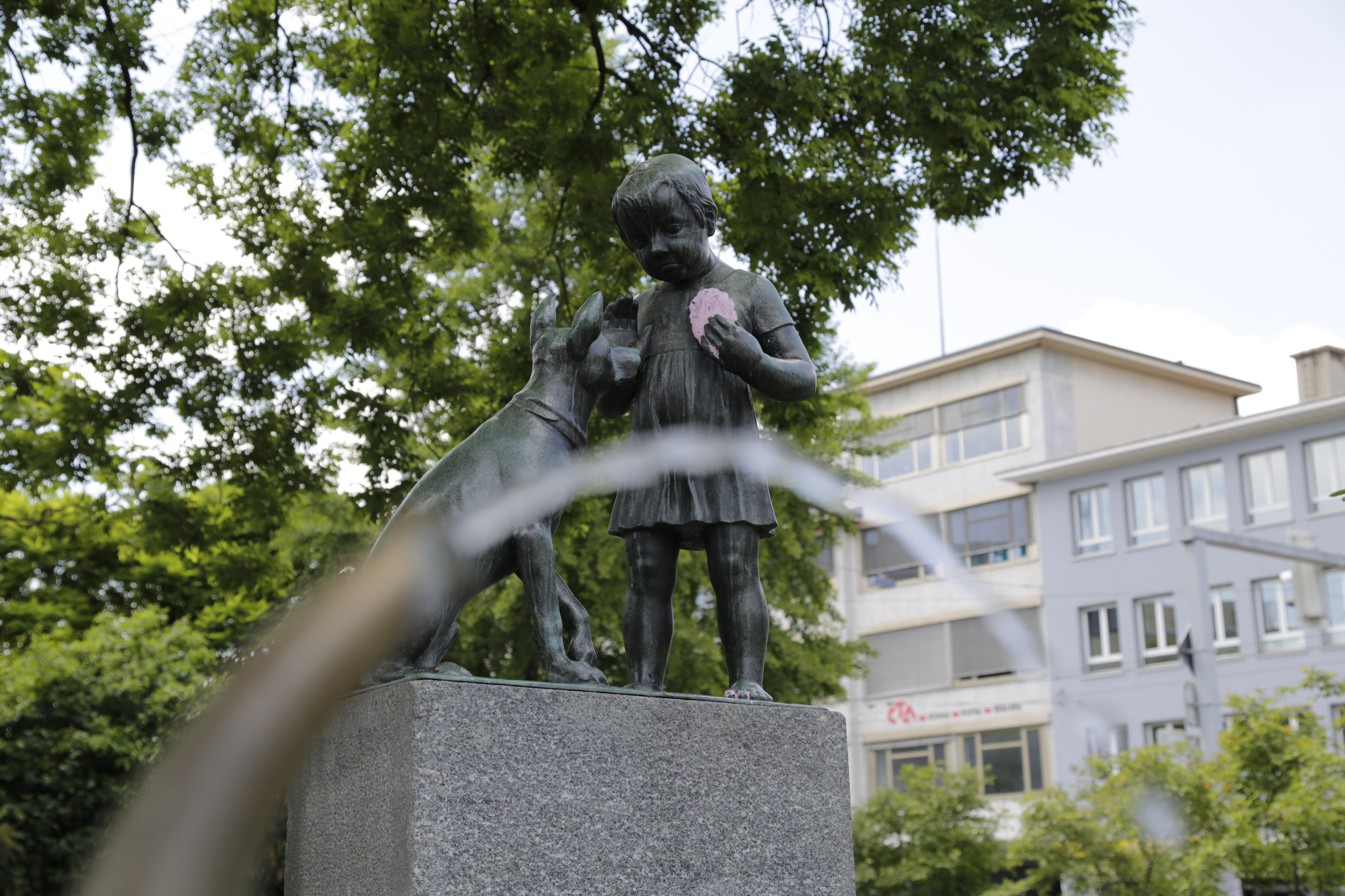 - Kliner Park an der Ecke Albisriedenstrasse/Rauti Strasse. Brunnen mit dahinterstehender Skulptur "Mädchen mit dem Hund" von 1936/37 von Adolf Ernst Hofmann