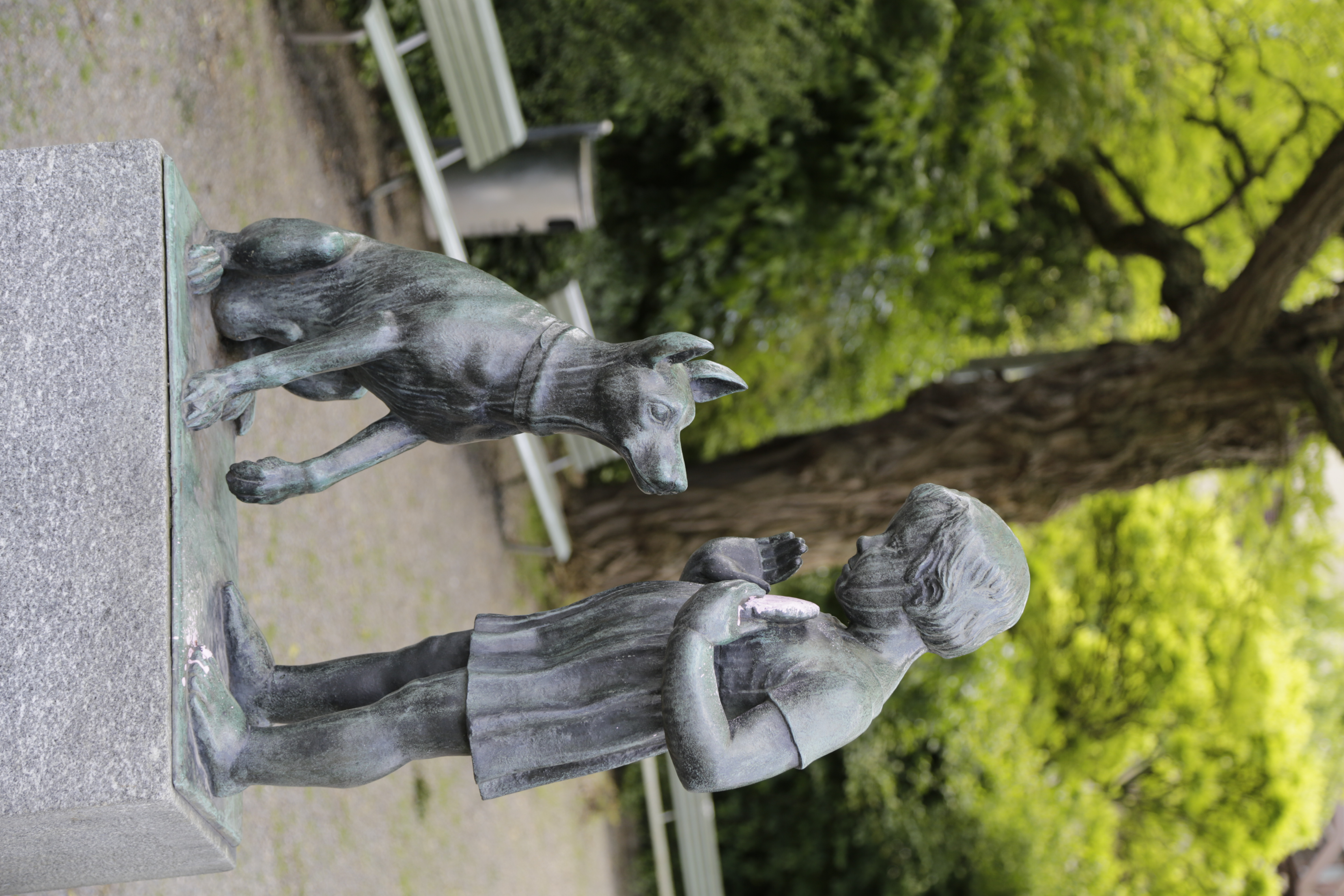 - Kliner Park an der Ecke Albisriedenstrasse/Rauti Strasse. Brunnen mit dahinterstehender Skulptur "Mädchen mit dem Hund" von 1936/37 von Adolf Ernst Hofmann