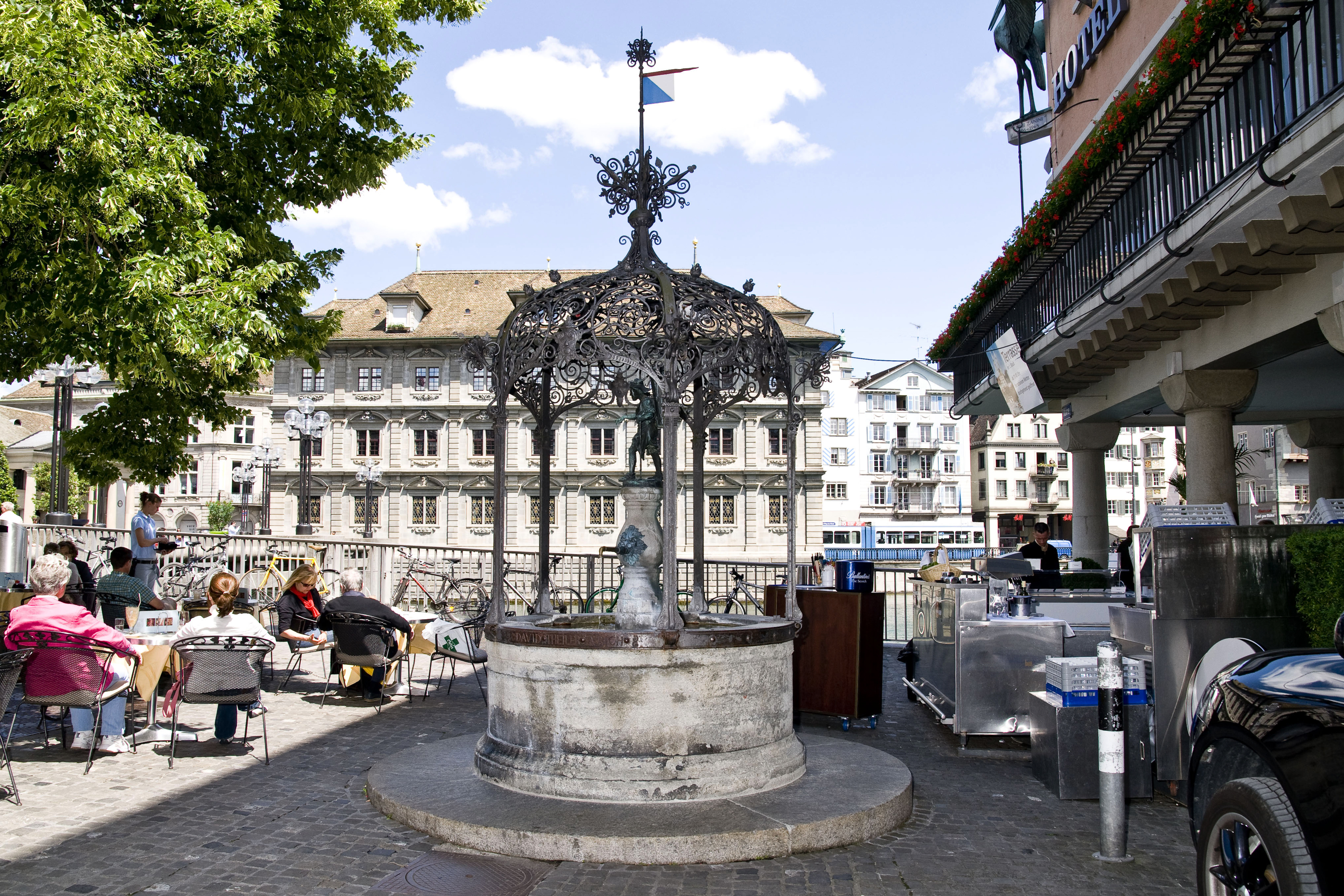- Dies ist der Winzerbrunnen auf dem Weinplatz in Zürich.
