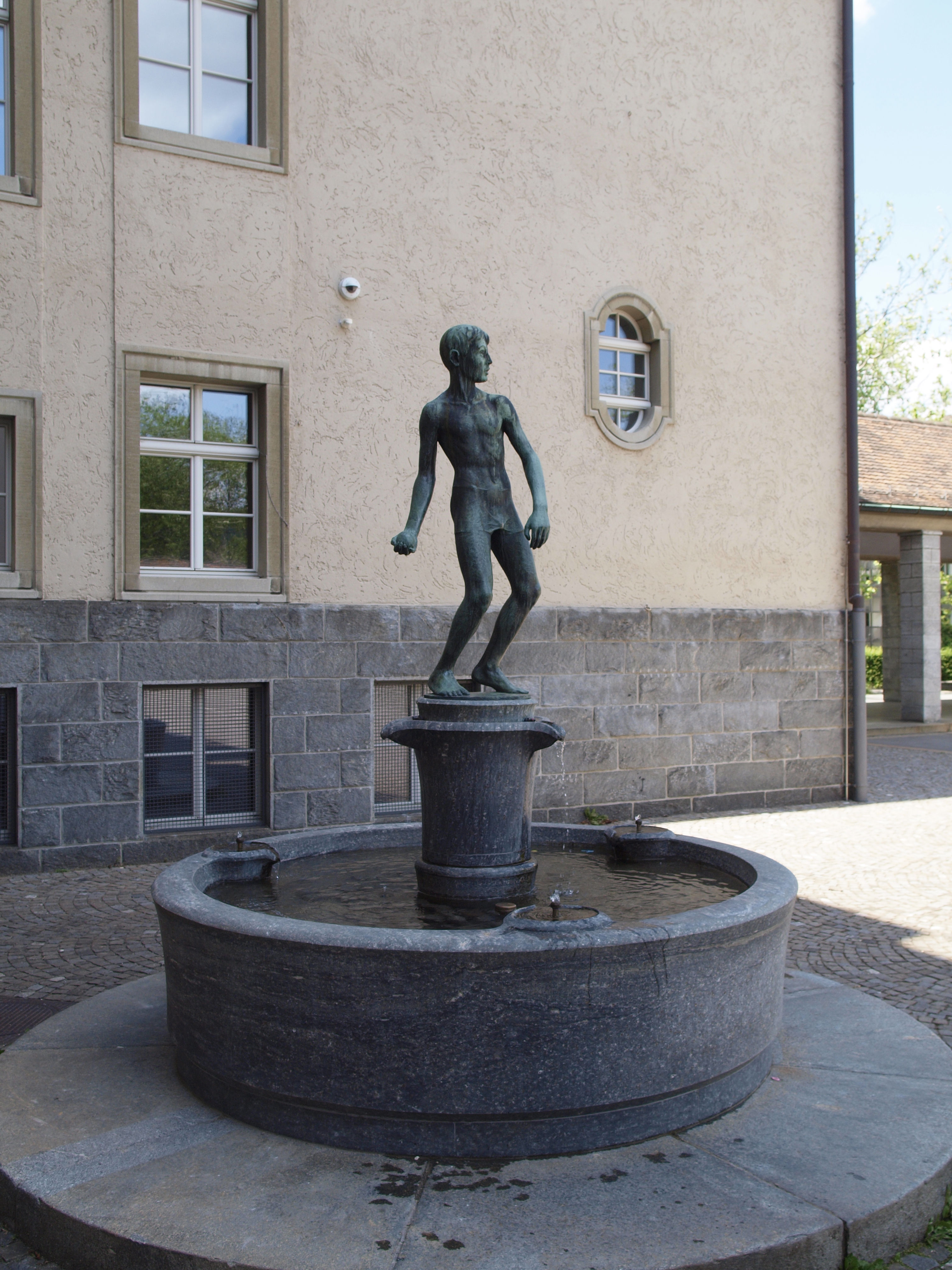 - Die Brunnenfigur "Kugelwerfer" beim Schulhaus Milchbuck in Zürich, wurde von Carl Fischer (Karl Leonhard Fischer) 1930 geschaffen.