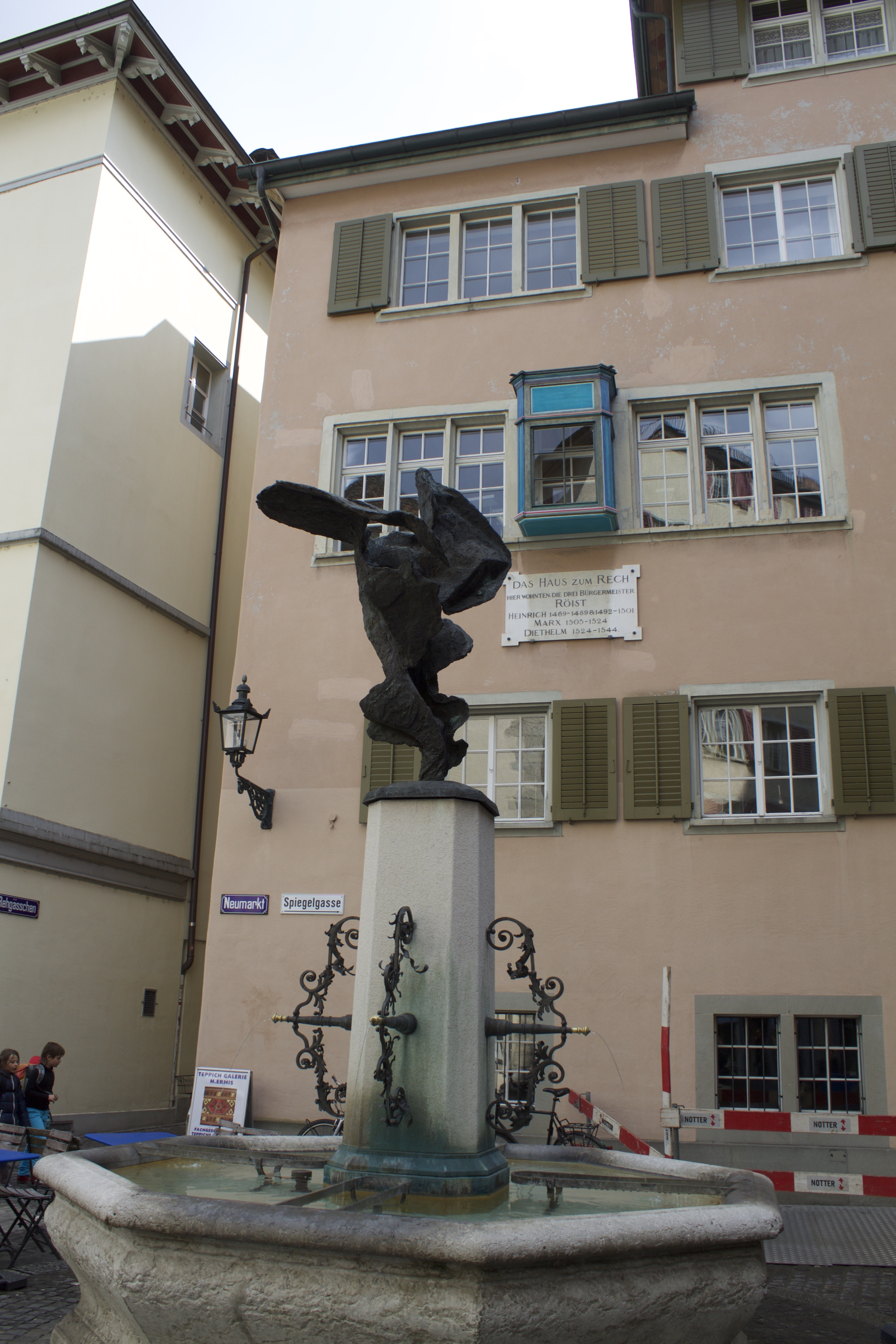 - Der Nikebrunnen auf dem Neumarkt in Zürich vor dem Haus zum Rech