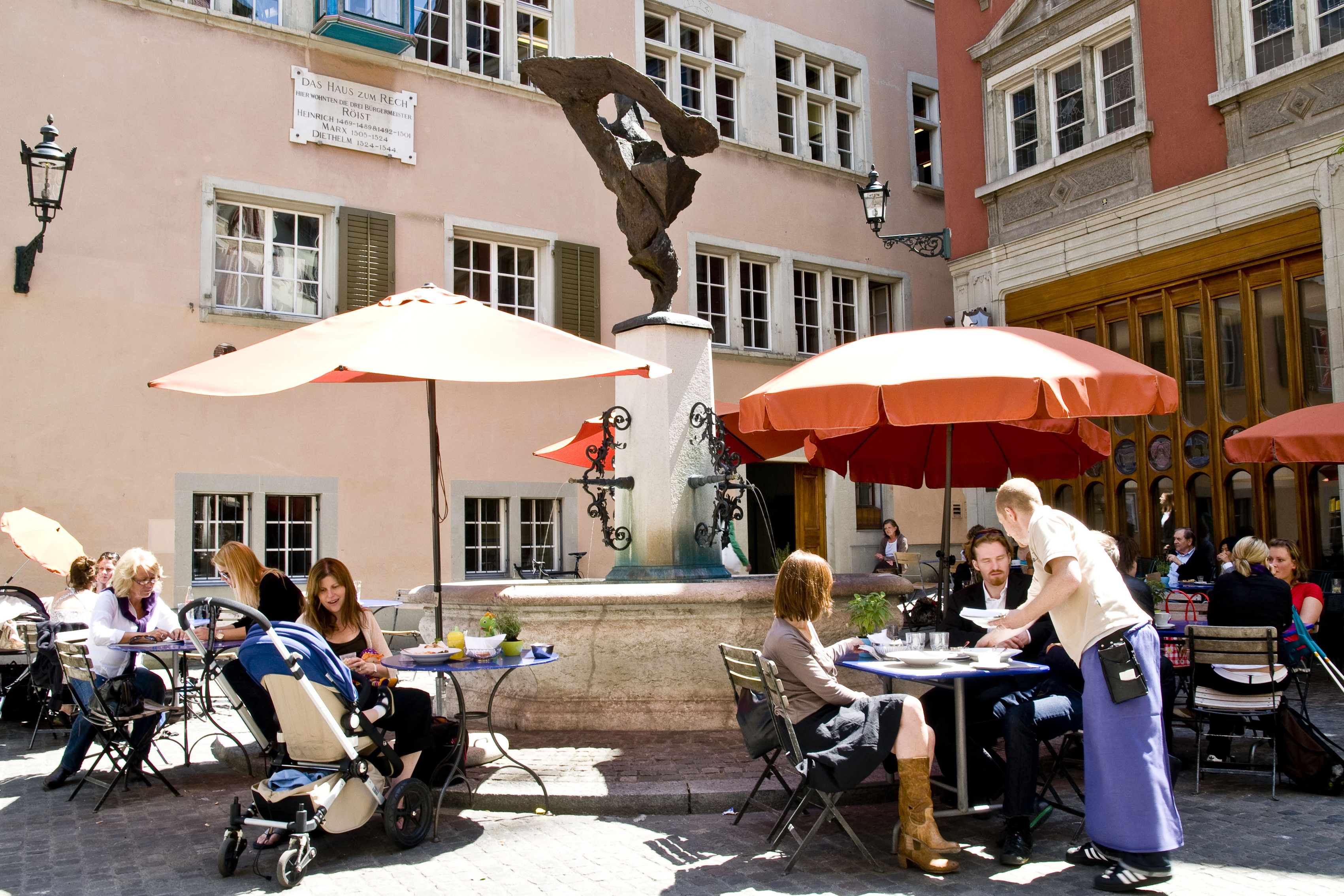 - Dies ist der Jupiterbrunnen in Zürich.